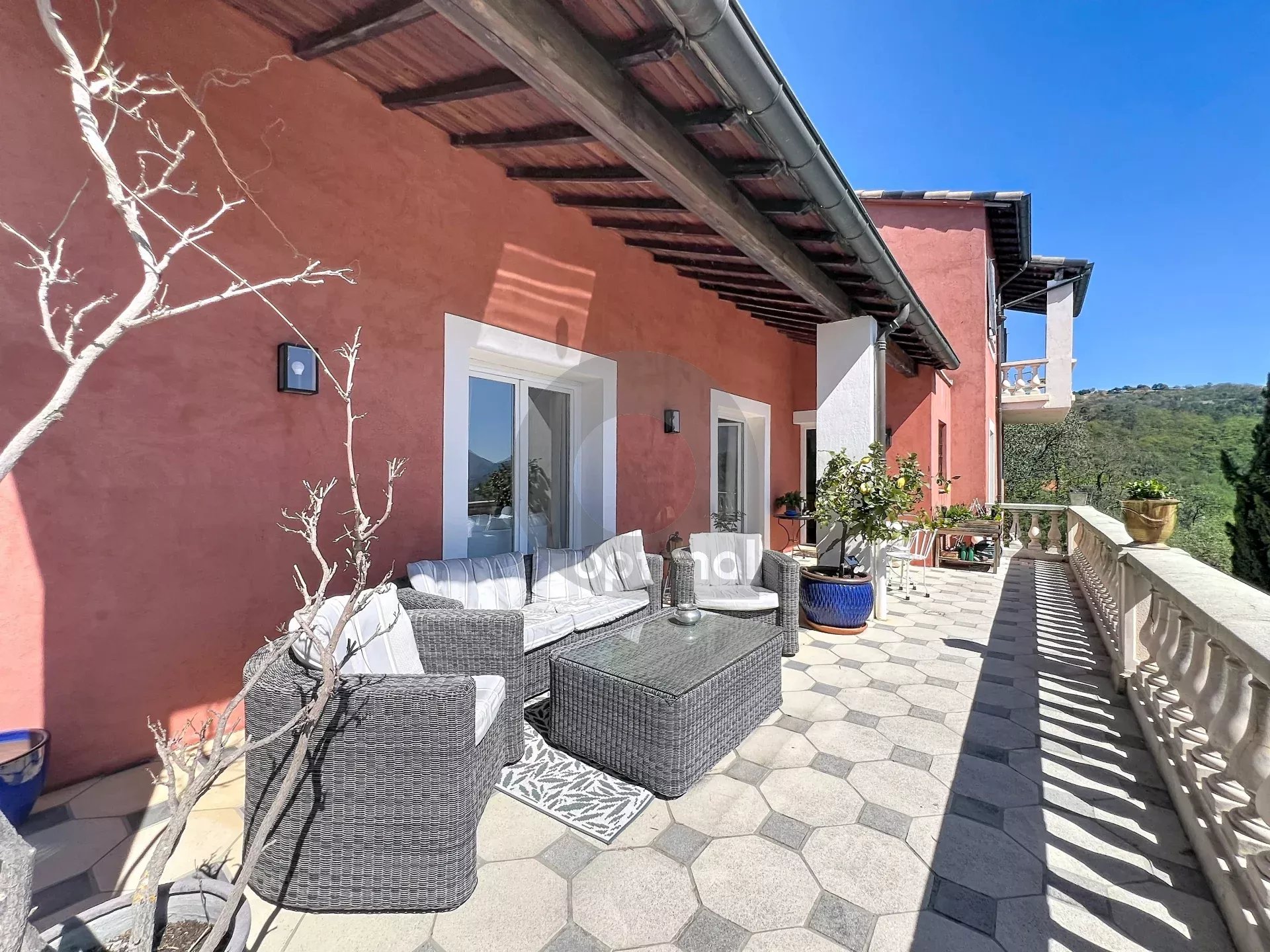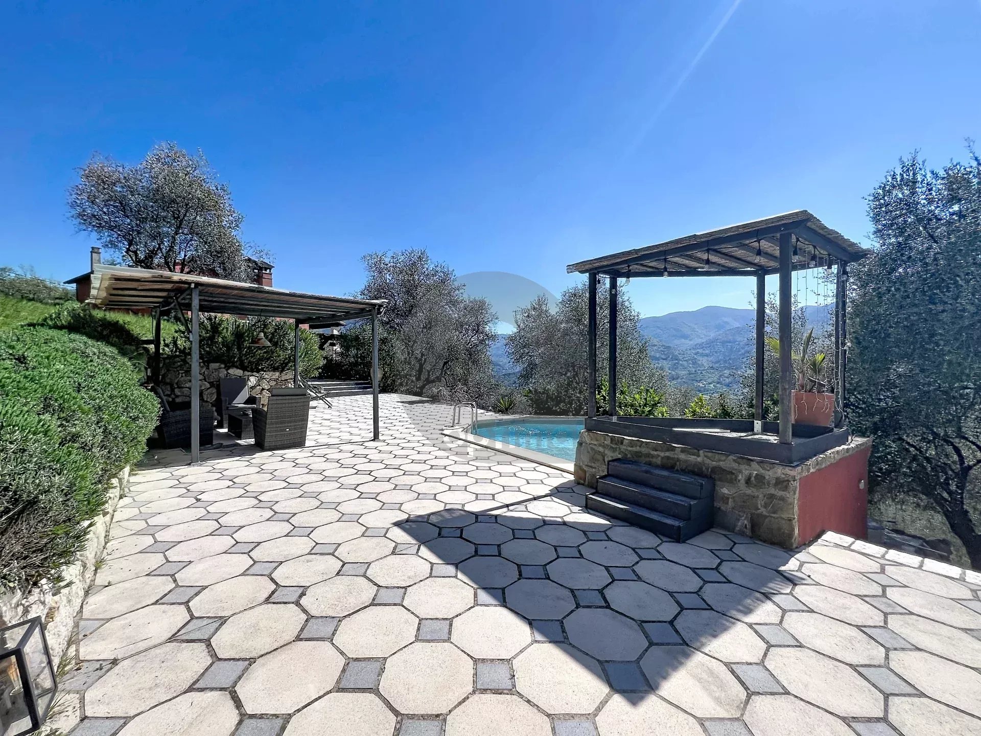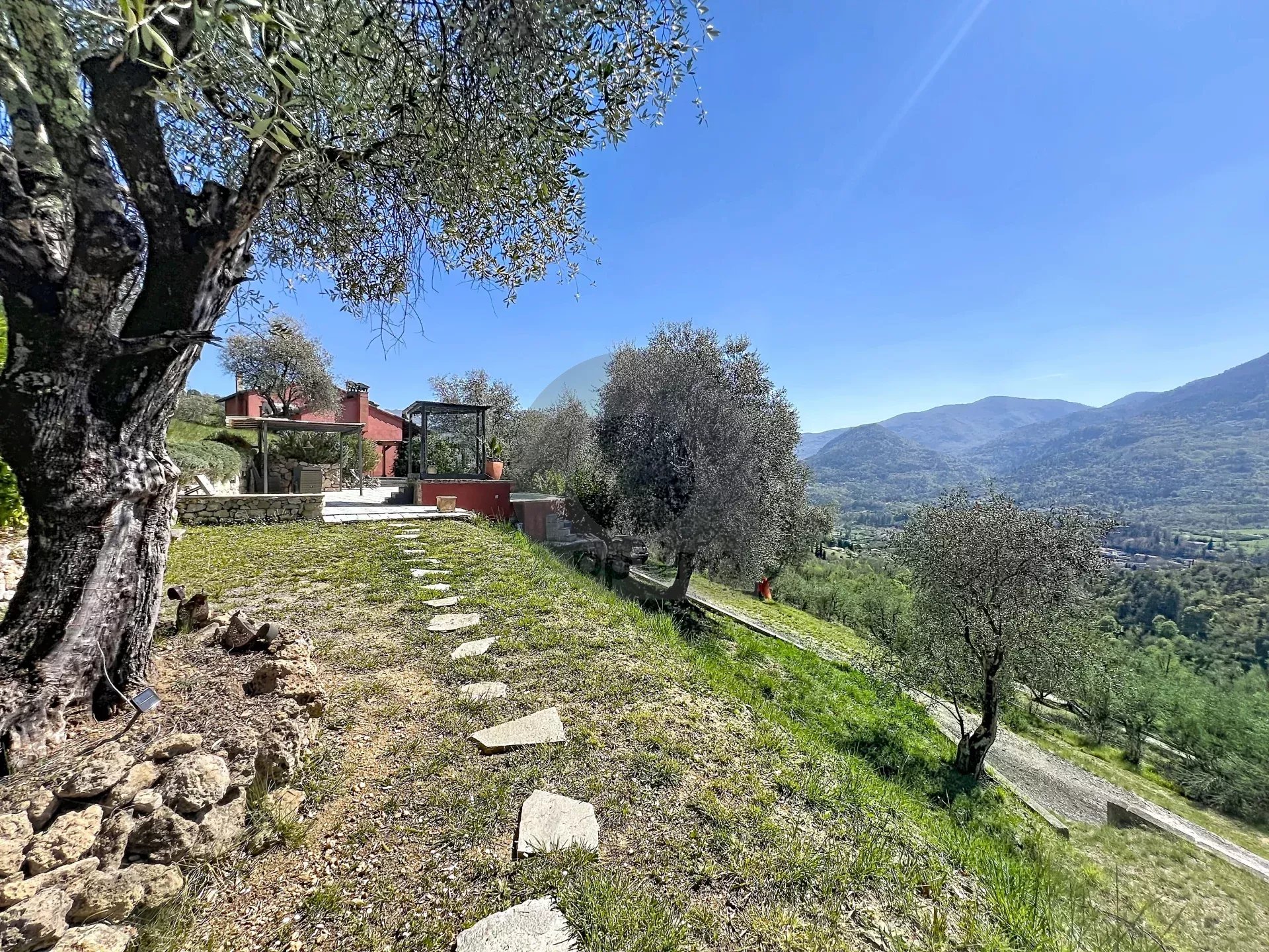 Dans le quartier Berins, à 30 minutes de Monaco, au calme absolu au cœur d’une oliveraie, somptueuse maison d’environ 240 m² sur un terrain de 6000 m² avec vue dégagée sur les montagnes.